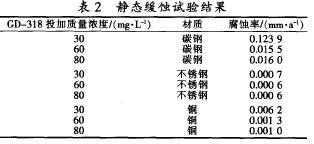 (1)靜態緩蝕試驗(yan)結果(guo)見表2。