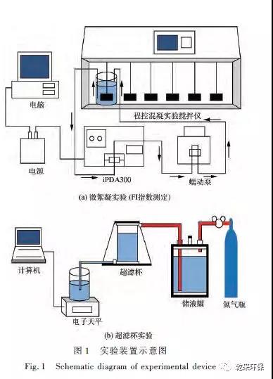 1. 3. 1 微(wei)絮(xu)凝實驗如圖1(a)所(suo)示,在1 L 燒(shao)杯中(zhong)分別加入海水,絮(xu)凝劑投加量(liang)分別為:10、20、30、40 mg·L - 1 ,借(jie)助程(cheng)控混凝實驗攪拌(ban)(ban)儀(yi)進(jin)行(xing)微(wei)絮(xu)凝實驗,攪拌(ban)(ban)速度為200 r·min - 1 ,攪拌(ban)(ban)時(shi)間為2 min,采用(yong)iPDA300 光散射絮(xu)凝度測(ce)定儀(yi)測(ce)定整個過(guo)程(cheng)的(de)絮(xu)凝指數(shu);微(wei)絮(xu)凝結(jie)束后取少量(liang)水樣,立即測(ce)定穩定動力學參數(shu),同時(shi)將水樣經0. 45 μm 濾膜過(guo)濾后,測(ce)定其UV254 、三維熒光光譜(pu)。