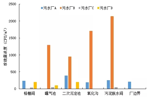 (1)微(wei)生(sheng)物氣溶膠中(zhong)微(wei)生(sheng)物主要來源于(yu)待處理污(wu)水(shui)(shui)(shui)。微(wei)生(sheng)物從液相向氣相的轉移(yi)發生(sheng)在(zai)污(wu)水(shui)(shui)(shui)處理工藝的各個環(huan)節,包(bao)括格柵(zha)間(jian)、初沉池(chi)、曝氣池(chi)、污(wu)泥濃(nong)縮池(chi)、污(wu)泥脫(tuo)水(shui)(shui)(shui)間(jian)等單(dan)元(yuan),微(wei)生(sheng)物的最(zui)高排放量通常發生(sheng)在(zai)生(sheng)物反應器單(dan)元(yuan)以及(ji)污(wu)泥脫(tuo)水(shui)(shui)(shui)單(dan)元(yuan)。