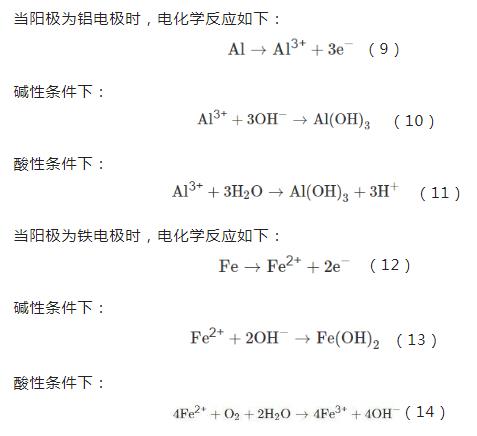 (4)沉淀網捕。陽極電解(jie)產生的(de)金屬離子(zi)在水解(jie)后,當其劑量超過本身溶度(du)積(ji)時,就會形成(cheng)(cheng)大量的(de)金屬氫(qing)氧化(hua)物絮(xu)體。這些帶有正(zheng)電的(de)氫(qing)氧化(hua)物絮(xu)體最初通常會具有較大的(de)比表面積(ji),因此(ci)表現出了(le)一定(ding)的(de)黏附能力,故而能夠網捕(bu)卷(juan)帶水中的(de)膠(jiao)體顆粒并迅速形成(cheng)(cheng)沉淀得以去除。