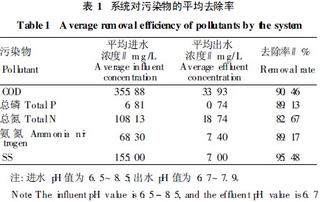 表1 列出(chu)了系統運行6 個多月的污染物(wu)(wu)平均濃度和去除率。由表1可以看出(chu), 系統對COD、總磷(lin)、總氮、氨氮等污染物(wu)(wu)質均有良好的去除效(xiao)果, 處(chu)理(li)出(chu)水(shui)達到國家環境保護總局頒發的《城鎮污水(shui)處(chu)理(li)廠污染物(wu)(wu)排放(fang)標準》( GB18918- 2002)一級(ji)B標準。