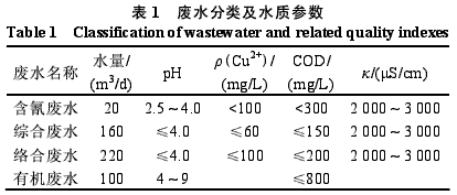 深圳(zhen)某電(dian)鍍企業每天排(pai)放的污水(shui)(shui)量為500m3,其(qi)中綜(zong)合(he)廢水(shui)(shui)、絡合(he)廢水(shui)(shui)和含氰(qing)廢水(shui)(shui)合(he)計排(pai)放量為400m3/d,其(qi)水(shui)(shui)質及水(shui)(shui)量如表1所(suo)示。